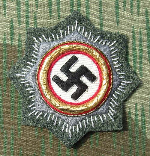 RSE269.Embroidered German cross in gold on Blue Grey.
