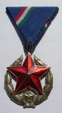 Merit medal 1st class .Hungarian flag on red star in gold wreath.With ribbon. $35.00 |