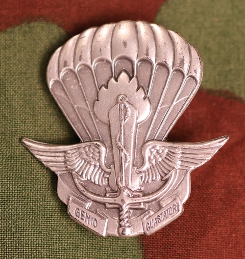 | ITB12.Italian Parachute badge for the Pioneer Engineer Company. Type II with Genio Guastatori on the scroll. $45.00 |