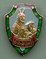 police seal on red enamel with gold border.Diamond shaped.$20.00