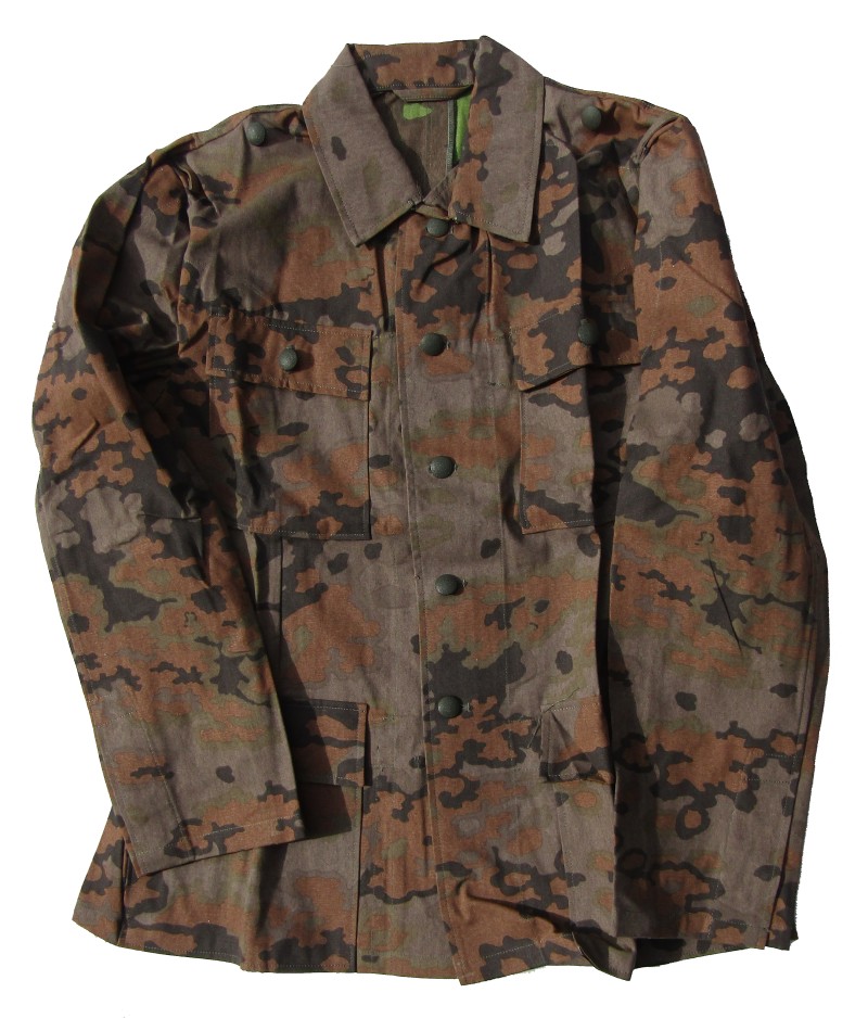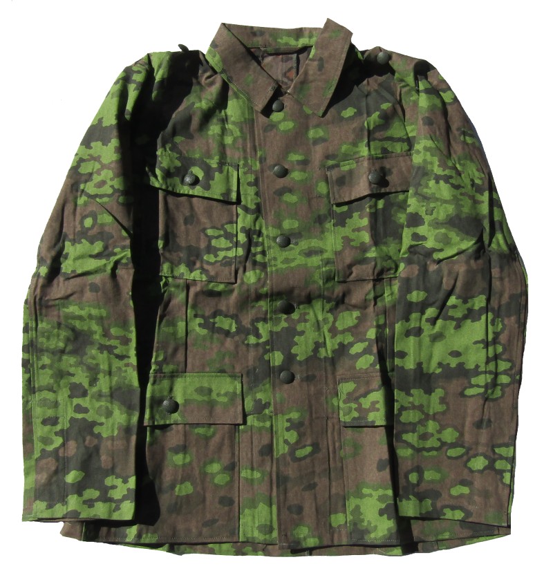 WW2 M44 Waffen SS DOT pattern jackets. Nice heavy 100% Cotton twill fabric, Roller printed. 4 pocket with loops and buttons for shoulder boards. $39.95 |