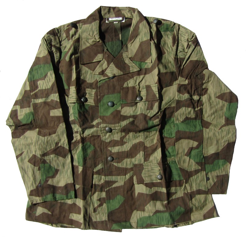 WW2 Splinter pattern jackets , spring side out. 6 button front, partial lining, no belt hook holes. $39.95 |