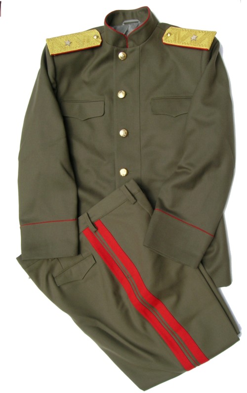 model 1943 service dress uniform (jacket and breeches) for Major General Infantry troops. Jacket fabric is high quality late Soviet Army Generals fabric. Buttons are late Soviet Generals type. Size is 58-4. $495.00 |