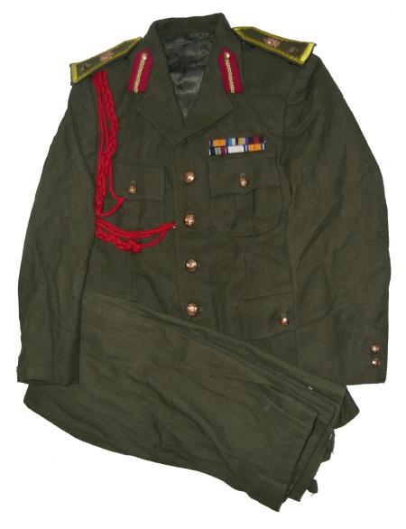 | IU4.Iraqi Saddam era Green 2 pc uniform. Jacket and pants. No insignia. Pants are mismatched color. $185.00 |