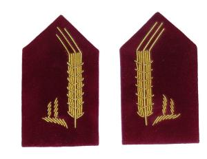 | 3.Afghan Army , Soviet occupation era, communist embroidered collar tabs.Gold bullion on dark red felt.$20.00 |