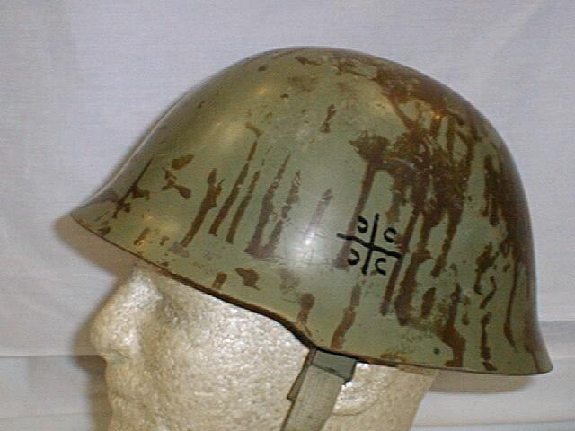 | CAHMT9.Bosnian Serb helmet with the Serbian cross and 4 c's drawn on both sides with a black marker. $69.95 |